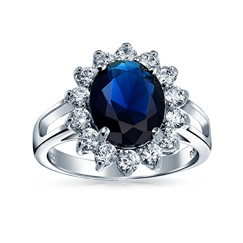 Personalizzare Classico Tradizionale 5Ctw Royal Blue Cz Crown Halo Oval Cubic Zirconia Simulated Sapphire Engagement Per Donne Promessa Anello .925 Sterling Silver Personalizzabile
