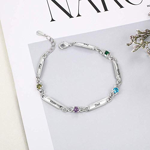 Personalizzata 4 simulato birthstone Fascino Argento Braccialetto Donna Mamma Nonna Cristallo Regolabile Braccialetto su misura madri Giorno Compleanno Regalo Ragazza Sorella BFF Moglie inciso 4 Nome
