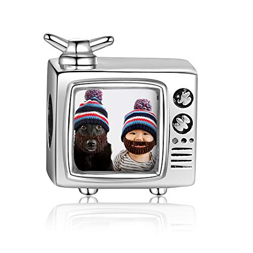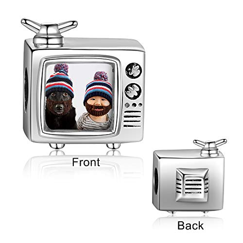 Personalizzato Bead Charms/Argento Sterling 925 Custom Foto Inciso Ciondolo per Bracciale Collana Gioielli Regalo per la Festa Della Mamma San Valentino (silver tv shape charm)