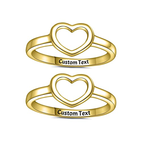 Anello a cuore aperto per amore, amicizia. Può essere personalizzato con nome, data o qualsiasi testo.