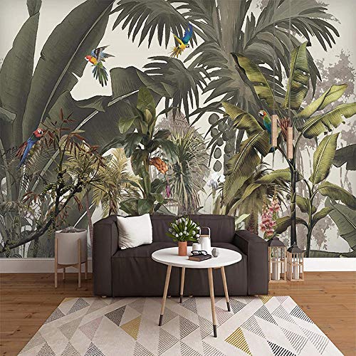Personalizzato Murale Carta Da Parati 3D Dipinto A Mano Foresta Pluviale Tropicale Piante Fiori Uccelli Foresta Animale Affresco Ristorante Murales-200 * 140 cm