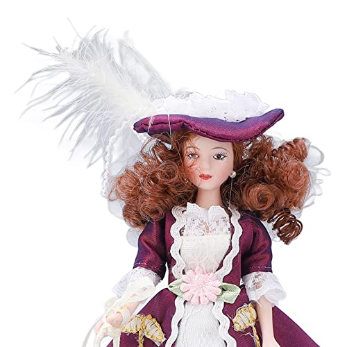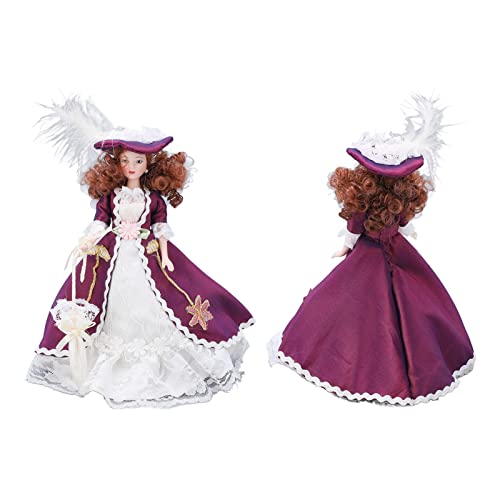 Persone in Porcellana in Miniatura, Decorazione della Casa delle Bambole in Scala 1/12 in Stile Vittoriano Gonna Viola Scuro Cappello Donna Ragazza Bambola in Ceramica