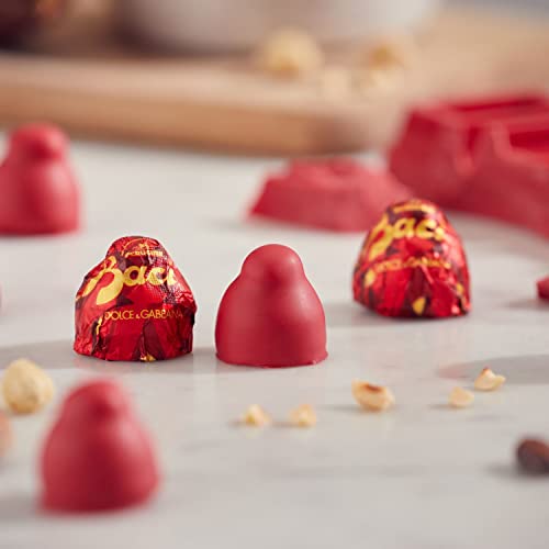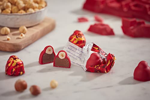 Croccante nocciola intera e morbido cuore al gianduia, arricchito da squisiti cristalli al gusto di lampone e copertura rosso rubino