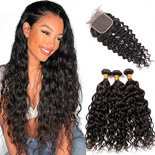Peruvian Body Wave 3 Bundles with Lace Closure 4 x 4 free Part 100% Unprocessed Human Hair Weft extensions Natural colore