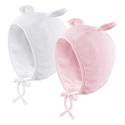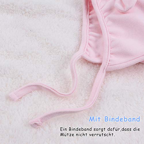 Pesaat Neonata Bambino e Bambina Cappello Prematuro Cofano Cotone Orecchio Protezione per Il Viso Cappelli per Neonati (Ear Bianco + Rosa, 0-6 Mesi,Prematuro)
