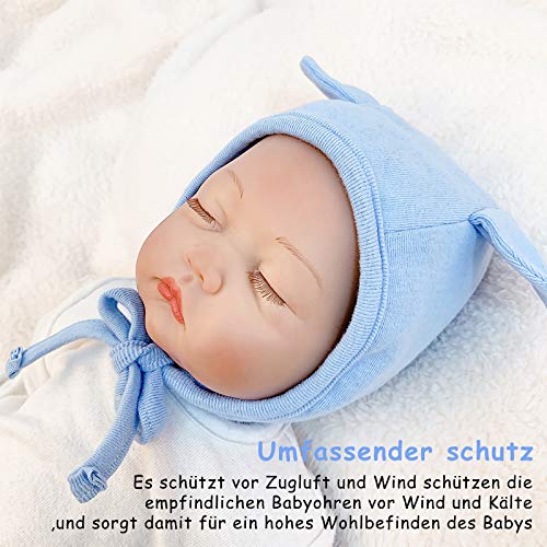 [Un berretto termico per neonati] Il berretto per neonati Pesaat con laccetto protegge la delicata testa del bambino. Il morbido doppio cotone è particolarmente comodo e ideale per i neonati. Il berretto protegge la testa del bambino da vento, sole e correnti d'aria.