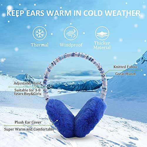 Pesaat Kids Knit Paraorecchie Scaldaorecchie pelosi invernali per esterno per ragazzi e ragazze 3-8 anni(Blu Royal)