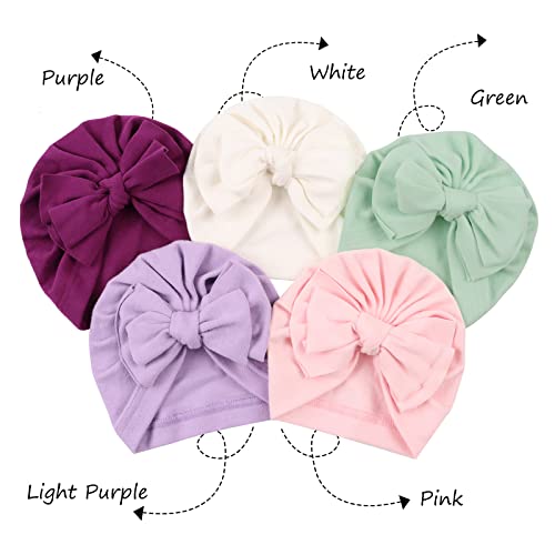 Pesaat 5 Pezzi Cappello da Neonato con Fiocco Multicolore in Cotone per Autunno e Inverno 0-3 Anni(Bianco)