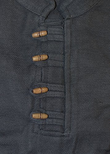 E pesante medievale-camicia/pirati, camicia in tessuto a mano con bottoni in legno Bauwolle, nero medio - età, stile medievale, vichingo