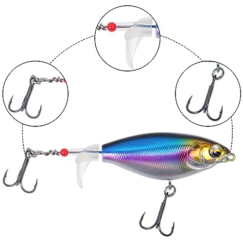 【Grande Esplosione D'acqua da Tavolo】L'esca per la pesca del basso ha un peso extra sulla pancia, controlla facilmente il centro di gravità, rendendo facile lanciare distanze maggiori. La coda dello spinner gira e schizza mentre recuperi l'esca con un movimento rapido e costante. Il basso è davvero difficile resistere!