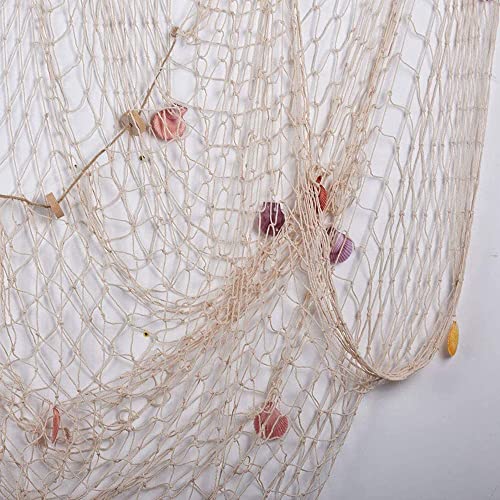 Rete Da Pesca Decorativa, Decorazione Rete Da Pesca, Rete Decorativa Per Muro, Cuerda De Algodon,Blanquecino,Flotar con Concha, para Maravillosa Decoración Del Restaurante De Mariscos(150 * 200cm)
