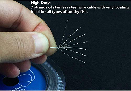Alta resistenza: 7 fili di filo di acciaio inossidabile con rivestimento in vinile. Ideale per tutti i tipi di pesci dentati.