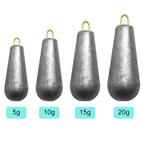 Pesi da Pesca, Piombini da Pesca, Piombo Da Pesca Forma Di Goccia, Kit di Attrezzatura per Pesi da Pesca, Attrezzatura da Pesca in 4 Misure per Accessorio per Pescatore D'acqua Dolce Salata, 16 Pack
