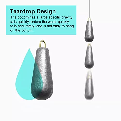 Design a Forma di Goccia: Pesi da pesca con design a forma di goccia, la forma della goccia d'acqua aiuta a ridurre la resistenza in acqua, ottimo per lanci lontani e affondamento veloce con poco suono.