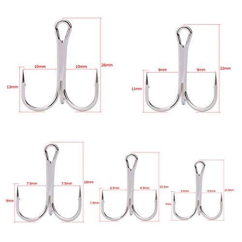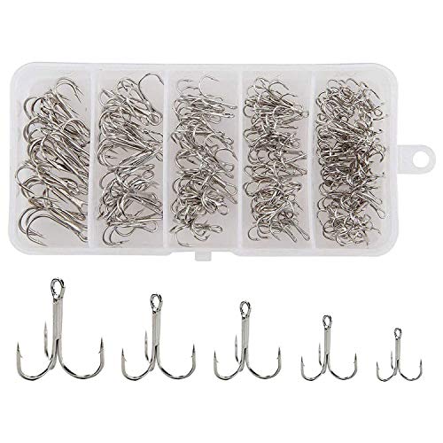 Amo da Pesca a Tripla Punta Spinato Amo da Pesca con Scatola di Plastica Ami da Pesca in Acciaio al Carbonio Spinato per la Pesca in Mare Misto 5 Dimensioni 2/4/6/8/10, Argento, 50 Pezzi