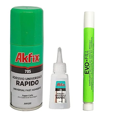 Pescaplanet Akfix 705 Colla Professionale Extra Forte 25ml con attivatore Spray da 100 ml + Fill 4g in OMAGGIOper riparazioni universali ad Alta Tenuta