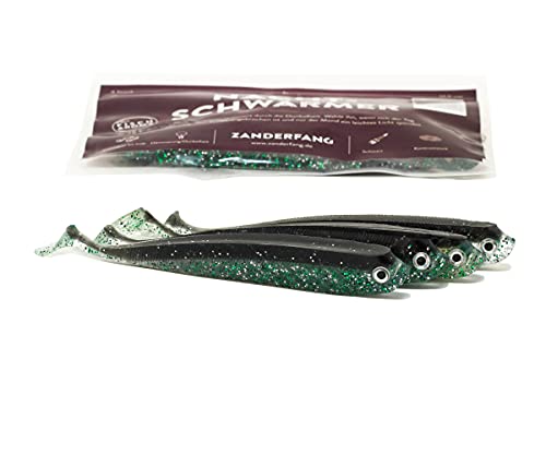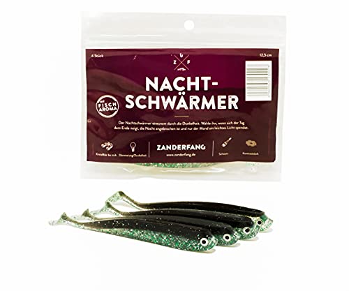 Pesce di gomma per la pesca Zander - "Notte schwaermer | 4 pezzi | Nero | 12,5 cm