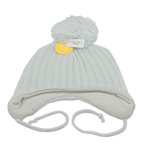 PESCI BABY Cappello Neonato Invernale con PON Pom Sottogola e Paraorecchie 2,2 Tog Caldo Termico Beanie Berretto Lavorato a Maglia Bambina Bambino 0-18 Mesi, Grigio 3-6 Mesi