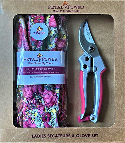 Petal Power - Set di guanti da giardinaggio da donna (2 paia) e cesoie - perfetto regalo da giardino per le donne (guanto piccolo, cesoie rosa)