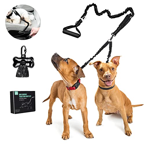 Petbank Guinzaglio per Cani, Guinzaglio Doppio per Cani Elastico, Riflettente Guinzaglio Doppio, Guinzaglio Cane Robusto con Manico Imbottito & Distributore di Sacchetto per Rifiuti, 360° No Tangle, S