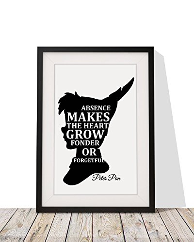 Peter Pan ispirato Absence Makes The Heart Grow Fonder Quote cornice Stampa A4 e 11 x 14 cornice smaltata con supporto, realizzata a mano pronta da appendere o free standing casa son figlia bambini una volta, idea regalo Black with White Mount