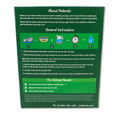 100% MINERALI NATURALI: Peterals è una soluzione completamente naturale per prevenire le bruciature dell'erba create dall'urina del tuo cane.