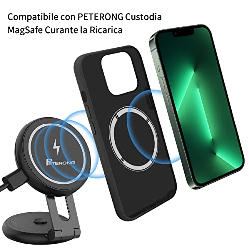 PETERONG Caricatore Wireless Magnetico per Auto Compatibile con MagSafe Carica per Tesla Model 3/Y, Supporto Cellulare Auto Pieghevole Invisibile Adesivo Supporti 360° per iPhone 15/14/13/12-Nero