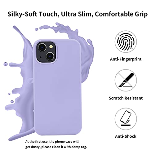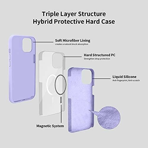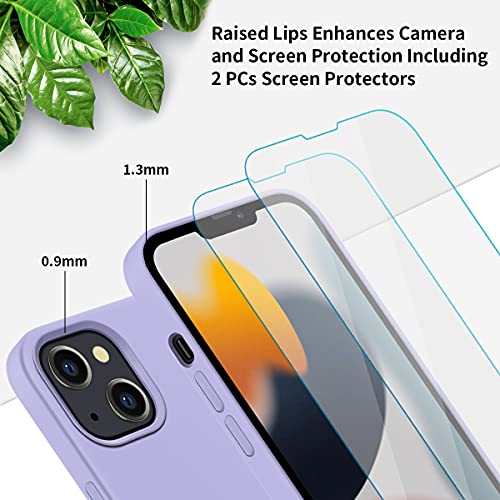 PETERONG Custodia in Silicone Compatibile con MagSafe per iPhone 13 6,1”, Custodia Silicone Liquido Protezione Completa con 2 Vetro Temperato, Slim Custodia Protettiva a 3 Strati Antiurto(Lilla)