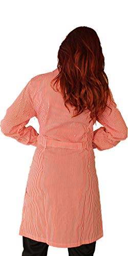 Camice donna,lungo, manica LUNGA,RIGHINI BIANCO- AZZURRI, BIANCO-VERDI O bIANCO-ROSSI.Ideali per lavori domestici,cameriere ai piani in alberghi,alimentari e altre infinite attivita'. 2 tasche anteriori piu' taschino pettorale,praticamente indistruttibili,durano anni!!! Di lavaggio e stiratura facile,non scoloriscono...i camici sono interamente prodotti in italia ....consigliatissimi!!! TAGLIE COMODE DALLA S ALLA XXL, attenersi alla descrizione in foto