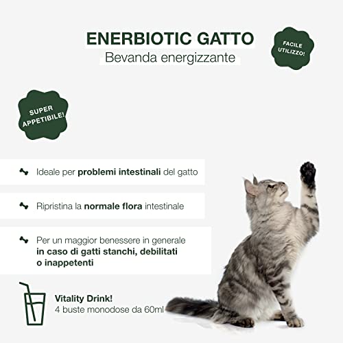 PETFORMANCE BENESSERE PER CANI E GATTI Enerbiotic - Bevanda Energizzante Prebiotica per Gatti - per Problemi Intestinali, 4 Buste Monodose da 60Ml