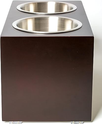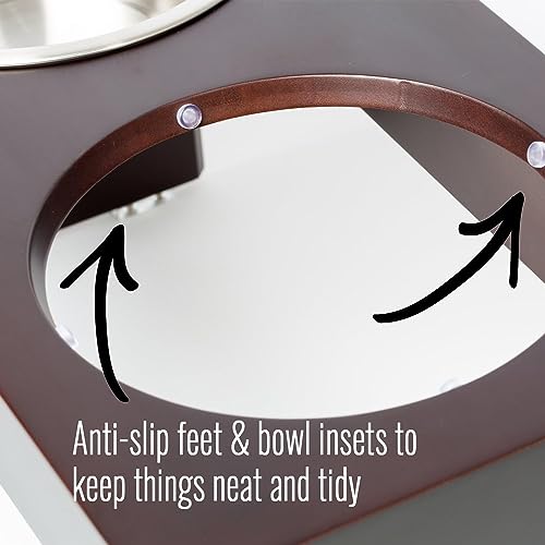 PetFusion Elevated Pet Feeder in Grado A Nuova Zelanda di Pino. (I) Resistente all' Acqua. (II) di Altezza 26 cm di Altezza. (III) 2 U.S. Food Grade SS Ciotole