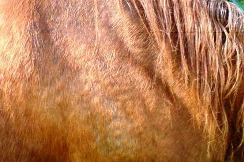 Cura 100% biologica ⇒ Lozione speciale per la cura del prurito e eczema o dermatite estiva (dermatite) nei cavalli e rigenerazione rapida della pelle del cavallo con i componenti di cura al 100% biologici.
