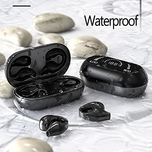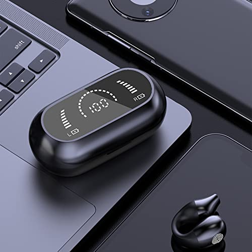 Peticehi Wireless Ear Clip Bone Conduction Headphones with Digital Display, Open Ear Headphones Wireless Bluetooth for Running Sports (White)
