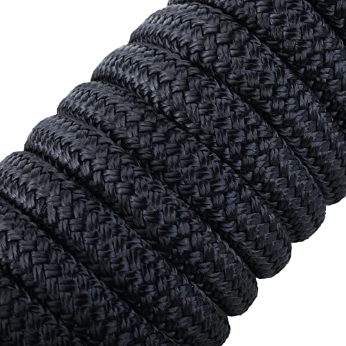 PetierWeit Doppio intrecciato nylon Dock Lines Marine ormeggio corda barca Dock Lines (L:20 ft.D: 5/8" Occhiello: 15 "/ Nero)