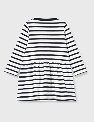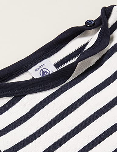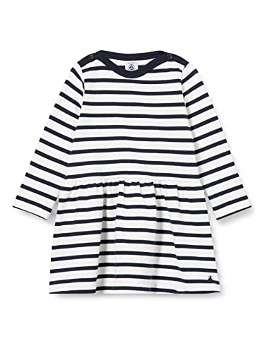 Petit Bateau A03T7, Abito a maniche lunghe Bimba 0-24, Bianco Marshmallow/Blu Smoking, 3 anni