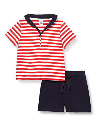Petit Bateau A042E, Set da 2 pezzi Bimbo 0-24, Rosso Peps/Multicolore, 3 mesi