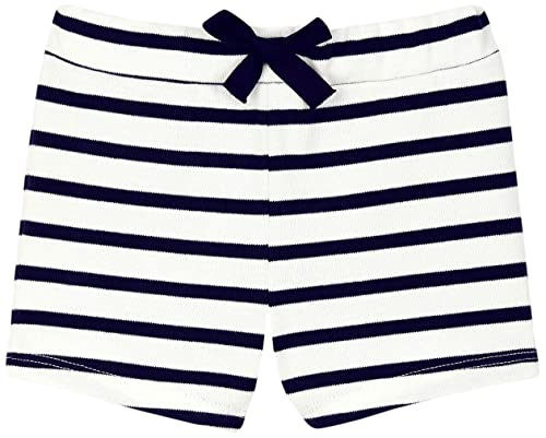 Petit Bateau A04PO, Pantaloncini Bimbo 0-24, Bianco Marshmallow/Blu Smoking, 3 mesi