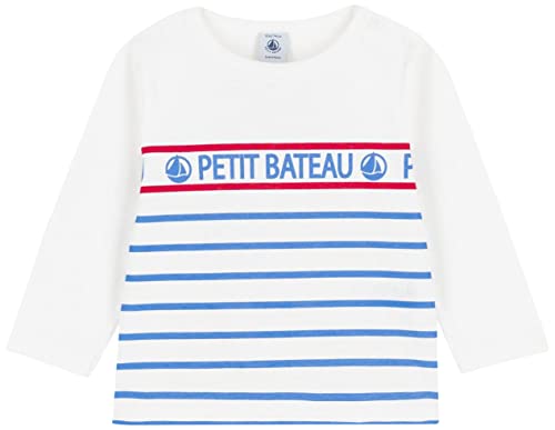 Petit Bateau A04TE, Maglietta a maniche lunghe Bimbo 0-24, Bianco Marshmallow/Blu Brasier, 3 mesi