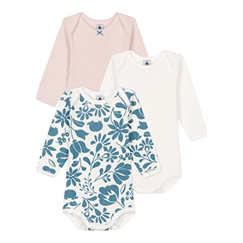 Petit Bateau 3 CORPI neonata Maniche Lunghe A05LI, Saline/Marshmallow + Marshmallow/Rover + Marshmallow, 3 Mois Bimba