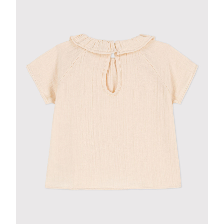 Dettagli prodotto: Camicetta da neonato con colletto a balze Chiusura a goccia sul retro Materiale in morbida garza Materiale e cura: Materiale: 100% cotone Lavabile fino a 30 °C Non asciugare in asciugatrice Non candeggiare Non lavare a secco Non stirare a caldo