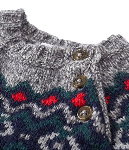 Questo maglione in misto lana/nylon per ragazzi è caratterizzato da un colorato motivo jacquard con uno scollo rotondo e raglan. I bottoni marmorizzati lungo l'orlo delle spalle facilitano l'inserimento e la rimozione. Questo maglione morbido e caldo non può mancare in nessun guardaroba quest'inverno