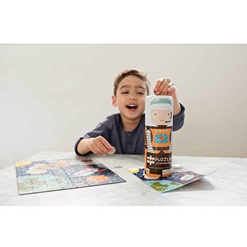 Puzzle da 64 pezzi contenuto in un divertente tubo in latta che si trasforma in salvadanaio