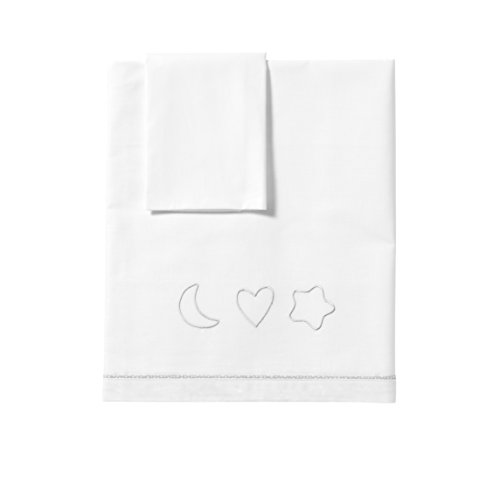 PETIT PRAIA, Set di lenzuola per culla portatile ricamate, Bianco