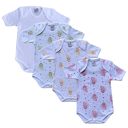 ZZZ ZZZ PETITE ABEILLE Made in Italy-4 Body per Neonato con Manica Corta in Caldo Cotone(Bianco o Fantasia) (F.Bimba/68)