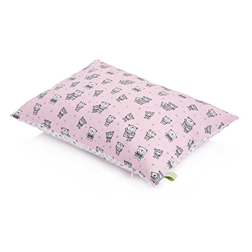 La Petite Unique Cuscino per bambini 35 x 25 cm CON IMBOTTITURA Cuscino per neonati lavabile, 100 % tessuto ecocompatibile con certificazione Ökotex, motivo decorativo: Orsetti in rosa / zampette in bianco