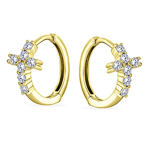 Petites Boucles D'Oreilles Religieuses Kpop Avec Croix En Cz Pour Femmes Pour Hommes Avec Zircone Cubique Pavée En Or Jaune 14K Et En Argent Sterling 925