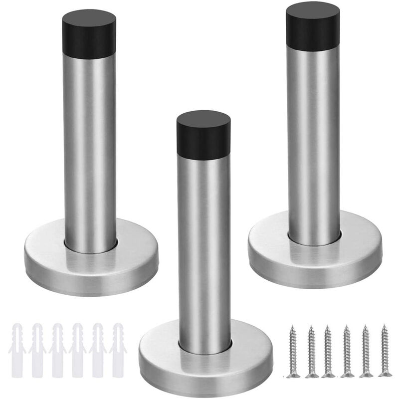 Un set di 3 fermaporte ciascuno di 43 x 43 x 95 mm. Il nostro fermaporta è realizzato in acciaio inossidabile di alta qualità, non facile da arrugginire e più resistente. La fascia in gomma tampone sulla parte superiore ha un buon effetto anticollisione e assorbe il rumore all'impatto. I fermaporta proteggono le porte e le pareti dagli urti e ne aumentano la durata. Adatto per camere da letto, bagni, balconi, uffici e altri luoghi. L'installazione è semplice, il kit include tutti gli accessori necessari, basta praticare fori e serrare le viti.