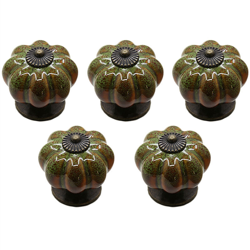 5 maniglie per mobili, ogni dimensione è 40×40×40 mm, con viti. Queste manopole sono realizzate in ceramica a superficie liscia e basi in lega di zinco resistenti. Il design del design a forma di zucca è bello e pratico, offrendoti grande praticità. Il motivo leopardato verde è retrò e speciale, che è la scelta perfetta per la ristrutturazione dei tuoi mobili. È molto adatto per cassetti, armadi, cassettiere, ecc., Aggiunge colori più belli alla tua casa.