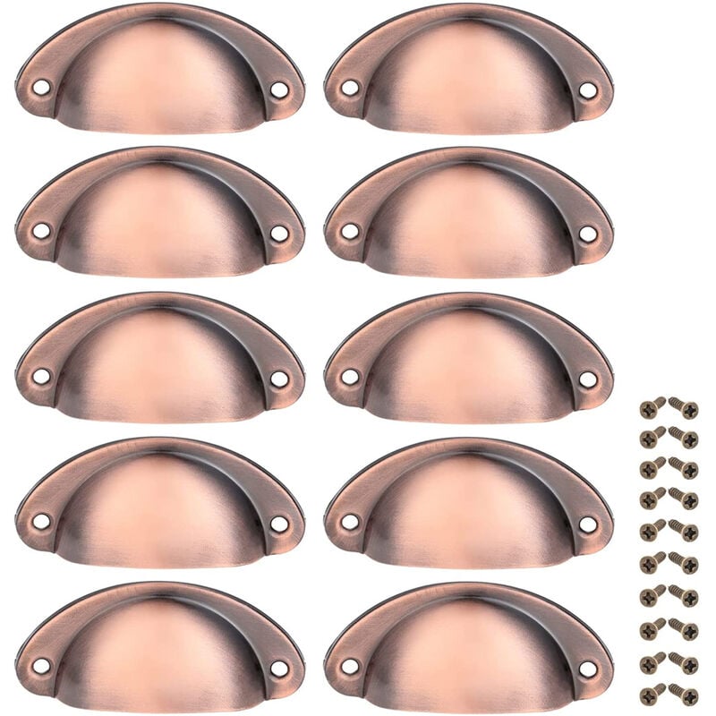 Materiale: Ferro Colore: Bronzo rosso spazzolato Dimensioni: 82 x 35 mm Incluso: 10 x Maniglie, 20 x Viti Classica maniglia retrò, semplice e comoda, facile da installare Ideale per sostituire le maniglie dei mobili danneggiate. Decora e rinfresca armadi, cassetti e altri mobili. Si prega di misurare le dimensioni necessarie prima di effettuare un ordine.