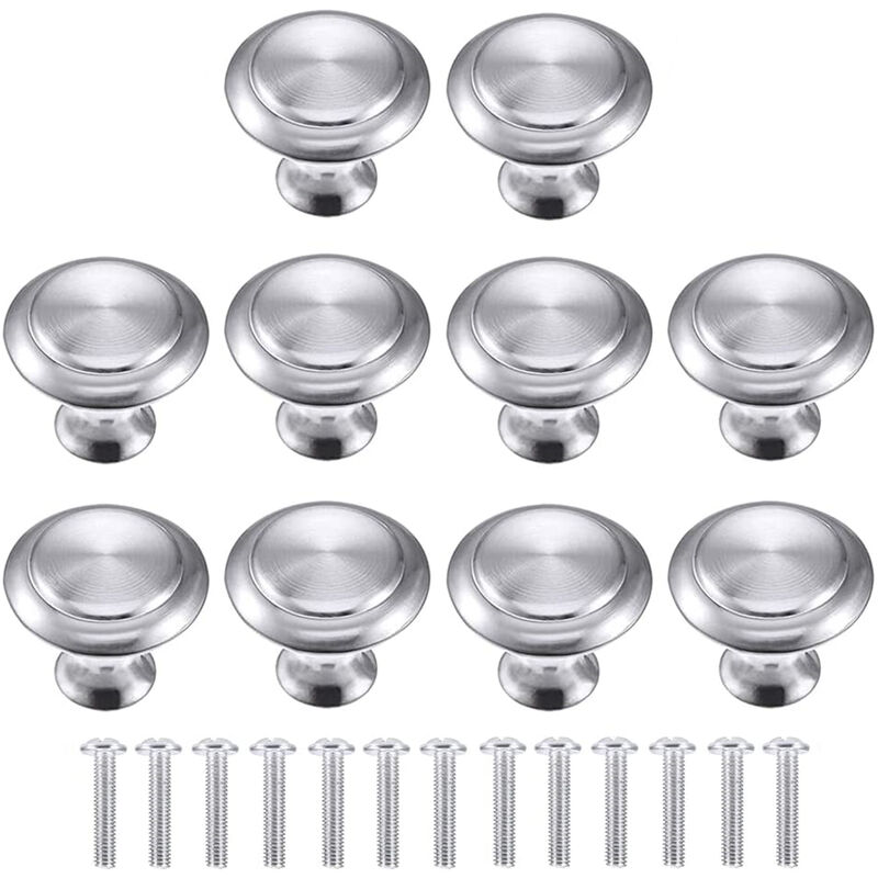 Un set di 10 pomelli e viti, ciascuno con un diametro di 30 mm, un'altezza di 23 mm e una lunghezza della vite di 22 mm. Questo pomello per armadio monoforo è realizzato in acciaio inossidabile con una superficie liscia spazzolata facile da pulire. L'aspetto a forma di fungo conferisce ai tuoi mobili un nuovo aspetto e si adatta alla maggior parte delle porte, armadi, cassetti.